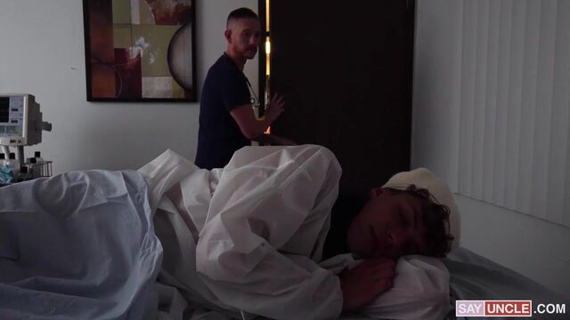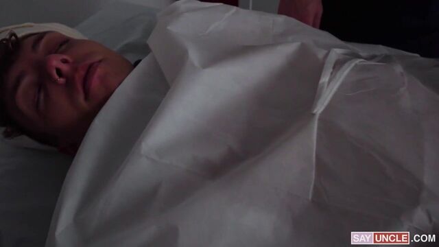 Jack, a spoiled patient, just went through some major surgery. The young brat is feeling better than ever, but weirdly enough, he’s also horny as fuck. Plus, he has noticed Brody, a hot nurse with a huge bulge, so he has been rubbing one out for him almost every hour. One day, feeling even hornier than usual, Jack slaps the monkey for a while and then pretends to be asleep when Brody shows up to change his bandages. When Brody bumps into Jack’s boner, he starts jerking it off, very much to Jack’s surprise. Soon, he cannot hold it, cumming all over himself. When Brody realizes that the boy was just pretending to be asleep and now that he has made a mess of himself, Brody will have to teach Jack a lesson on how to behave properly while he’s still under his watch. Lucky for Jack, this kinky medicine is exactly what he’d been yearning for.