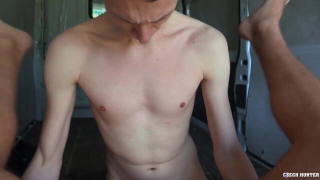 Once again, I was driving through a small town, it didn't take long, and I noticed a dude waiting at a bus stop. I turned my van around and offered him a lift. He was very cautious and absolutely hated my camera. Still, going with me was better than waiting for the bus. My handsome new friend was a student and had a job. His goal was to be fully independent, which is something you need a lot of money for. Once we left the town, I pulled over and made him an offer. He had a nice cock and once I paid him enough, he agreed to suck mine. And he was very good at it. Soon I was so horny I wanted to fuck his ass. He didn't like that at all. Probably was worried about his beautiful behind. Well, I definitely wanted to fuck so it had to be my ass.