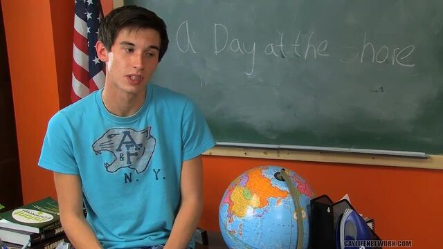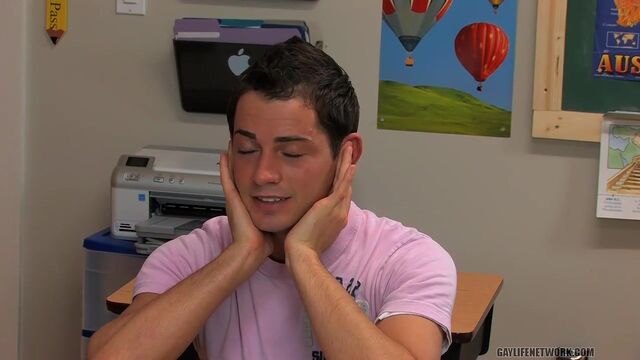 Skyelr Bleu is a teacher's assistant and he's trying to teach young Kalob Bridge grammar. The young man is giving him a whole lot of attitude though and he has to figure out a way to break through. That's when the idea of a good fuck comes upon him. Why not just pound the shit out of the cutie's asshole and give him such immense pleasure that he can't help but listen. Taking it in the can will drive him wild with desire! Kalob gets a blowjob from the TA and then Skyelr bends him over the desk and slips his cock in the tight hole.