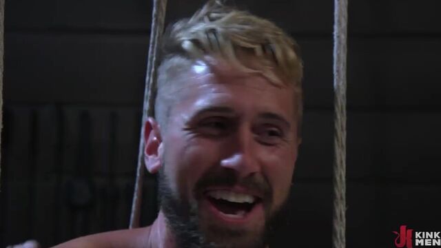 Wesley Woods is bound, helpless, and pleasured big time - KinkMen