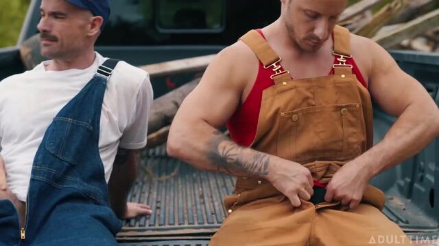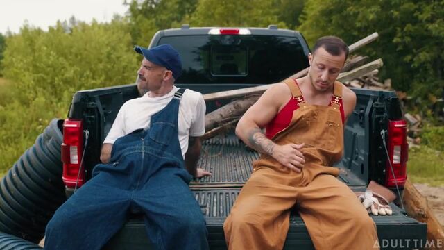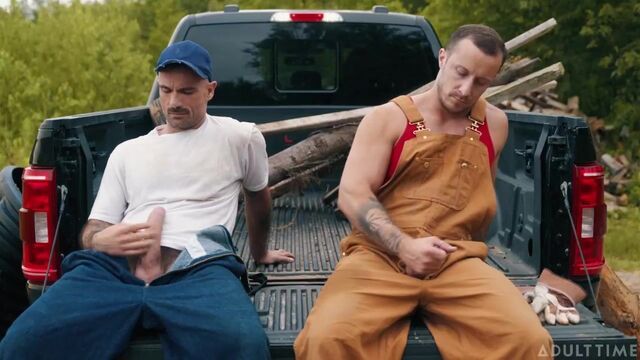 Two sweaty farmhands, Zack Mackay and Tito Patron, are taking a break from work when they casually gossip about the farmer's hot farm girl. They get hot and bothered during the conversation, popping boners beneath their overalls. Since the farmer's not around and the boners aren't gonna go away themselves, Zack and Tito decide to extend their break and rub one out right then and there in the back of the pickup truck. But there's something about all that fresh country air that leads to them doing MORE than just jerking off!