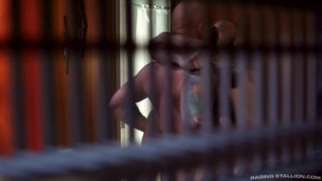In his room, Kirk Cummings is restless, working out and pacing the floor. A knock at the door saves him from boredom when Drew Sebastian walks in with a hard cock. Looking like he came straight from the office, Drew unzips his slacks and Kirk is met with a thick, rock-hard cock that he instantly wraps his lips around. After getting his throat reamed, Kirk bends over the bed in a jock to let Drew worship his hairless hole. Kirk can't wait to get the daddy's pole deep and bareback in his hole, so Drew gives Kirk what he's begging for and eases his cock into his friend's ass. Kirk takes the passionate pounding like a champ, pushing back, pulling Drew in and working up a sweat. They end up on the floor and Kirk is riding Drew. Hiding in the shadows, Chris Damned jerks off secretly as Kirk gets his hole stretched and filled. Back on the bed, Drew is fucking Kirk missionary that ends with Drew's seed all over Kirk's hole. When Kirk is ready to blow, Drew feeds him the cock that was just inside him until Kirk erupts all over his abs. Watching them both cum from the shadows sends Chris over the edge and his load blasts all over the place.