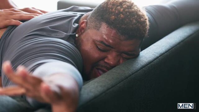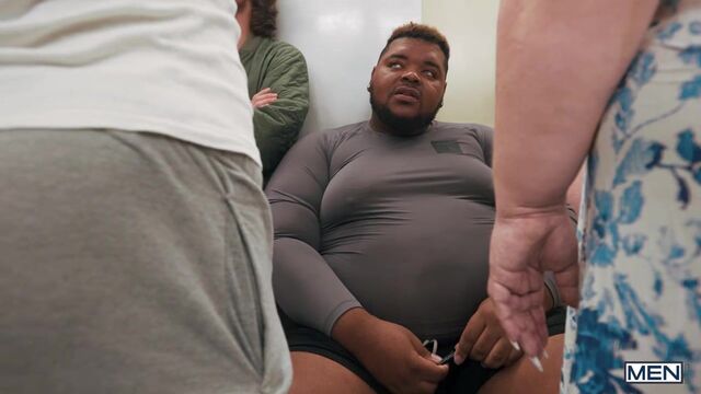 When Drake Von stands in front of Santana XXL on the subway, the hunk's bulge in his gray sweats is perfectly at eye level. Santana isn't shy about checking Drake out and slips his number in his pocket as the guys eye fuck each other. Once the subway clears out, Drake sits next to the hungry bottom, who starts to suck that big dick. Santana's stop comes before the top does, so Drake calls him later to finish what he started. Santana devours that cock and takes it deep in his hole. Drake fucks the bottom in doggystyle and on his back, then facefucks him before drilling him on all fours till he cums on his face.