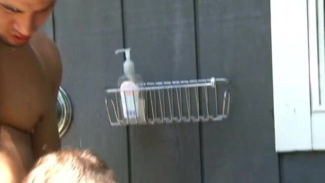 Seems Mason has run into Kevin Wood whom he hasn't seen in a few years. Kevin is built like a Roman soldier who has been fighting battle building up his enormous biceps and pec's.At 5'11 and only 23 years of age Kevin spends majority of his time working out at the gym and being a bartender at the local Pub. This sexy hard body did not expect to accidently run into Mason but we are sure glad he did because Mr. Wood has a tight round ass and Mason can't wait to penetrate it.After some catching up they both decide to shower up outside on a lovely sunny day. Once the water starts pouring out next you know it hands and cocks are rubbing all over bodies. Mason slides his fat cock into Kevin's tight hole and if you listen carefully you can here Kevin whimper a bit.Just when things have heated up and Mason is loving where his cock is buried he has a change of heart and can't let his boyfriend find out what he has done so he has to stop everything and leave Kevin by himself.The scene is exciting and very hot with these two hunks but you will love the end when Kevin creams a hot load all over himself.Enjoy!