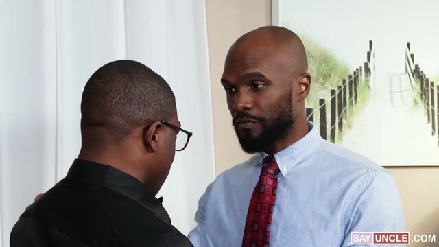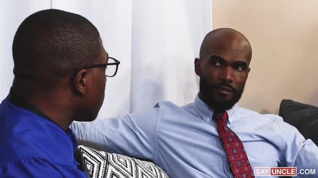Trevor is nervous about his upcoming graduation speech. The young black boy is strolling around the house anxiously, trying to remember all the words and thinking he will make a fool of himself. Boe Jack, his cool stepdad, tells him to calm down and explains to him that there are ways to cope with these feelings. Trevor begs his stepdad to show him how to handle these situations so Boe Jack offers him comfort by telling him there’s a family secret to make the nerves go away. Suddenly, Boe Jack moves closer to his stepson and starts stripping him naked. Trevor is shocked by his stepdad’s move, but he is also secretly curious to see what will happen next. Boe Jack tells him to relax once more and reassures him that this is the best solution for all of his problems right now as he gently puts his stepson’s ivory cock on his thick lips.