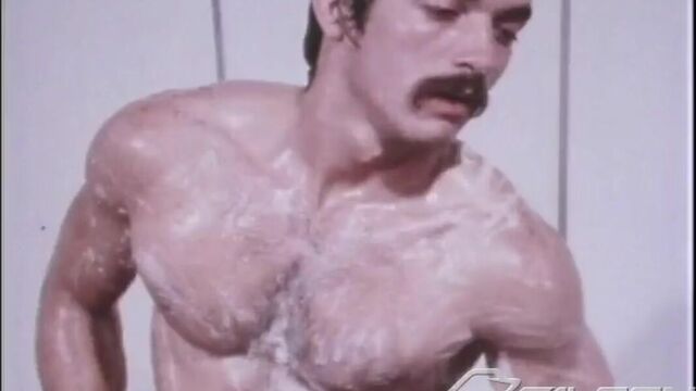 Steam Heat: Handsome Dick Fisk strips down in the locker room, travels to the shower room, and soaps up his big, thick 10' tool, and has an explosive climax in the wet stall as the water and cum from his cock runs down the drain.