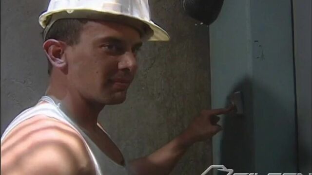 Brad Rock and Derek Foster, left waiting for an elevator in the dark, use the downtime to explore each other's bodies.