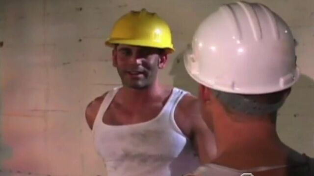 In a wood shop, Matt Cole and Darren Phillips, unable to pass the time any other way, can't keep their hands off each other's ripped, masculine bodies.