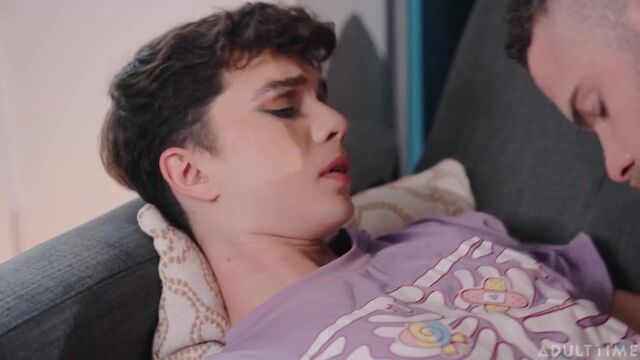 Adorable gamer femboy Sam Ledger is neck-and-neck with his boyfriend Marcus McNeil as they play a high-octane racing video game on the couch. Sam is winning so far, and it's not hard to figure out why: his cute ass is practically inches away from Marcus' face as he lies across his lap enticingly. Marcus can barely keep his eyes off Sam's slender figure and, before long, decides to give up on winning the race and score some points in a more... intimate way.Marcus pulls off Sam's panties and brings his hard cock into his mouth, sucking him off sensually as Sam moans with delight. Sam then gets to taste Marcus' cock too when they 69 on the couch, with Marcus thrusting his dick down Sam's throat as he hovers his crotch over his perfect face. Then Marcus takes Sam from behind, giving him a hard anal fucking that ends with him cumming deep in his boyfriend's tight asshole.