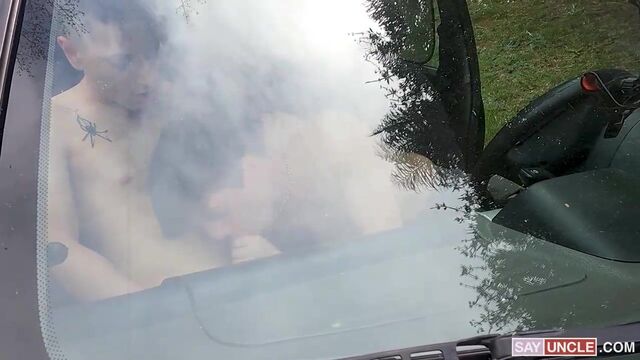 Dylan is having a lousy and boring day driving people around when young and handsome Dylan picks up a ride with him. The sweet twink lives in a small village away from the city and is heading downtown, looking for a little fun away from his calm town. Uriel immediately spots his passenger’s naughty side and starts asking him about the area, wondering if it is true that guys love to hang out there to do some seriously nasty stuff. Dylan is no stranger to the town’s gossip and has heard about people getting kinky nearby, where no one can see them. After a couple of rubs, the two guys find themselves kissing and sucking each other, testing how far they can get without getting caught. Horned up by the solitude of a forsaken town, the two men end up having a raw fuck sesh with a delicious cum-tasting finale.