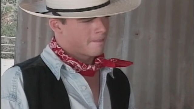 Rod Barry & Kurt Stefano; with Brian Daniels. Kurt and Rod are two cowpokes full of macho swagger who know how to hoof around each other, sucking their fleshy saddlehorns and riding each other like crazed bronco busters who won't be thrown off. All to the amusement of Brian who watches and strokes himself to orgasm.