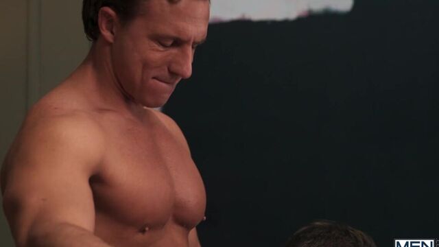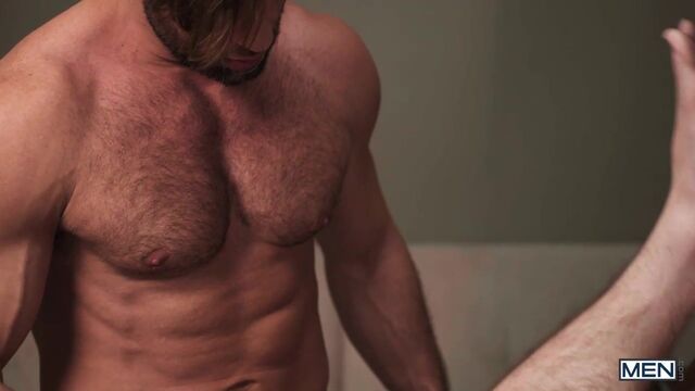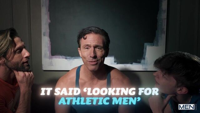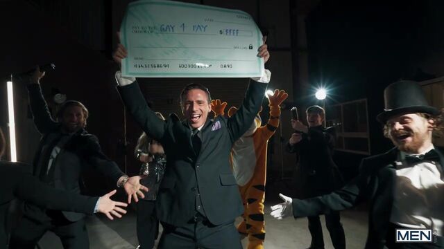 When his costars Dom King and Jake Preston suggest a just-us-gays outing after the shoot, Reese Rideout has something he has to get off his chest... and the best way to do it is through the medium of song! Jake and Dom join in MEN's first-ever musical number, "Gay4Pay", encouraging Reese to expand his concept of sexuality... but the director tells Reese to quit singing and get to fucking. Jake sucks Dom and Reese, and Reese rides Dom, then takes Jake's cock on all fours. Then it's Jake's turn to get penetrated, first riding Dom and then getting fucked on his back by Reese until all three guys cum. Time to hit the bar!