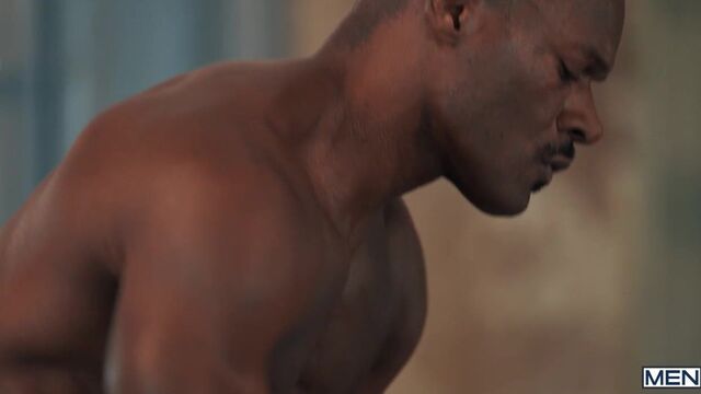 Muscular adonis Rhyheim Shabazz slowly strips down as he and Alberth Pineda kiss and touch one another's bodies, taking turns blowing each other before Rhyheim rims the bottom. The guys fuck in missionary and spoon, and Alberth rides the top before Rhyheim effortlessly lifts him for a stand-and-carry. Rhyheim drills the bottom from behind face down, ass up, then gives him a facial before Alberth strokes himself till he cums.