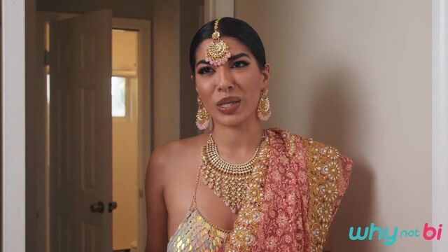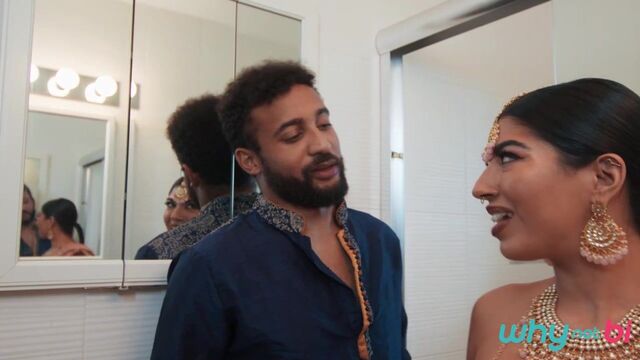 Before they leave for a wedding, Jasmine Sherni and CK Rogers show off their dance routine in their Indian outfits for their friend William Seed and his GF. As Jasmine does her makeup, CK gets horny and wants to fuck, but she tells him to save it for after the wedding. Looking for some relief, CK shows his cock to the other woman in the house, but William's GF is shocked, and her BF chases CK into the bedroom to teach him a lesson! William tells the horny guy to suck his cock, then CK rides him on the bed. When Jasmine walks in on them, she says the wedding can wait and joins in! There's enough of William's cock to satisfy both of this couple.