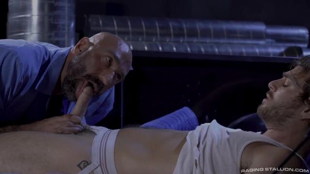 Max Adonis has just finished his load for the day. He is tired and horny from handling long hard pipes all day. Thinking he's alone, Max climbs into the bed of a truck and starts to jack off, but Drew Sebastian is watching. As Max lays back stroking his dick, Drew walks up on him and joins in the fun. He pulls Max in closer, stroking and sucking on his dick before moving Max to his knees to swallow down Drew's hefty meat. After getting his cock sucked, Drew bends Max over to lube his hole up with spit before sliding in his thick cock. On the tailgate of the truck, Max bears down, spreads his ass, and takes every inch Drew stuffs inside his hairy hole. Getting rammed in multiple positions, Max ends up on his back getting stuffed until Drew can't hold back any longer and shoots his load all over Max's hole. Max begs for Drew to shove it back inside and when he does, Max loses it and erupts with thick ropes all over himself.
