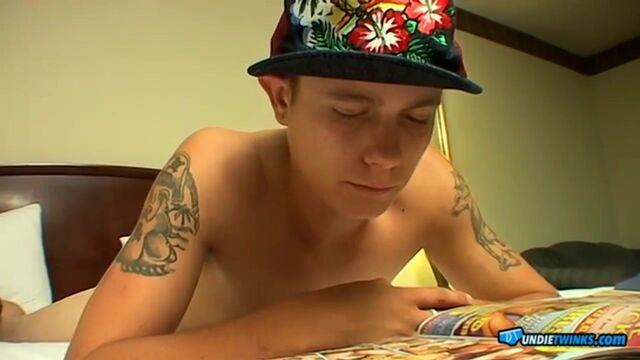 Grant Hiller flips through a magazine and fucks the bed - Undie Twinks