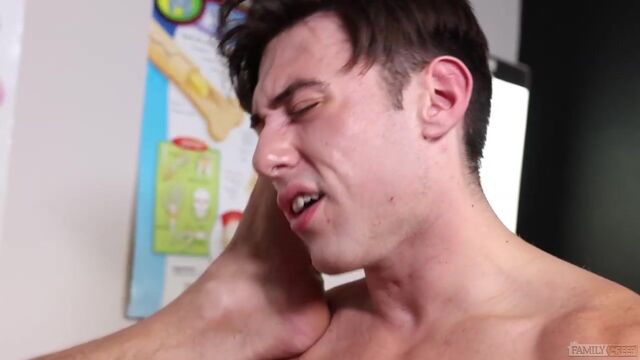 Mature Killian Knox has the perfect solution for his stepson's groin injury. Come watch this horny stepdad as he rides Archie Paige's cock!