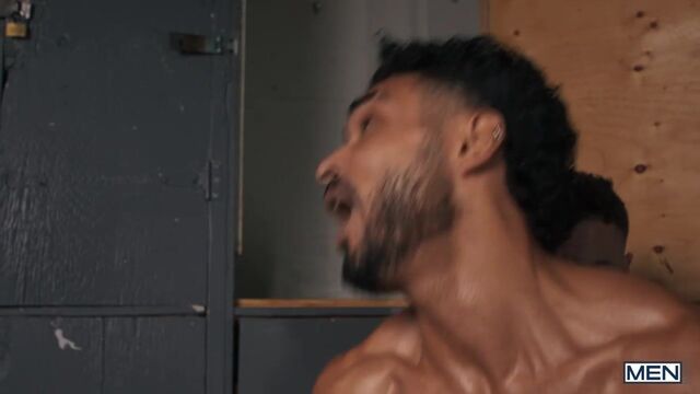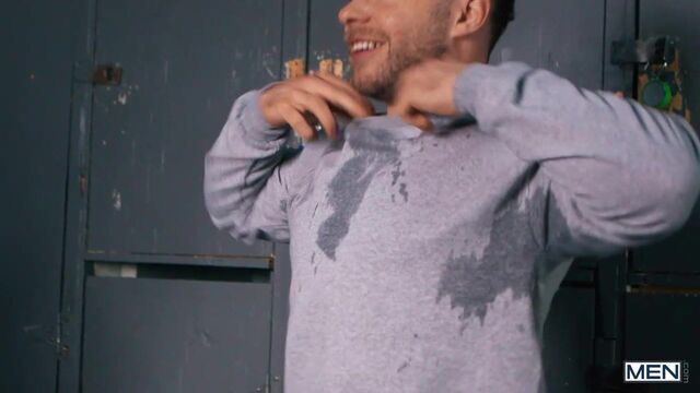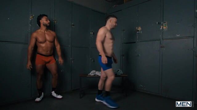 As these police academy cadets go for a jog and do some jumping jacks, Diego Silva can't stop checking out Marcus McNeill's dick bouncing in his shorts! When the sweaty recruits head back to the locker room, Marcus calls him on it, and Diego begs for a look. Marcus tells him he'll have to do more than that! Diego eagerly sucks the top, and Marcus rims him, then fucks him in doggystyle. The bottom takes it deep in piledriver and on his back, then rides Marcus till he orgasms, and licks up the top's load.