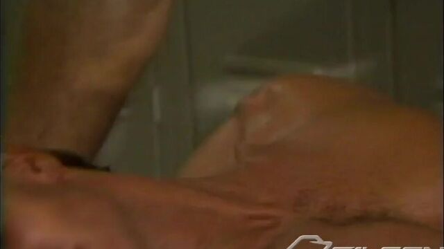 Gym workers John Davenport and Tony Marino energetically suck and fuck in a sauna while muscular, mature, gym-owner's son Ron Pearson surreptitiously fucks himself with a big black plug in a locker room and then cleans his ass with a hose in the shower until John and Tony reveal themselves-feeding his hungry mouth and asshole with their huge dicks before taking compromising photos of the asshole-gym-owner's son who made them miss out on a party later that night by staying open late.