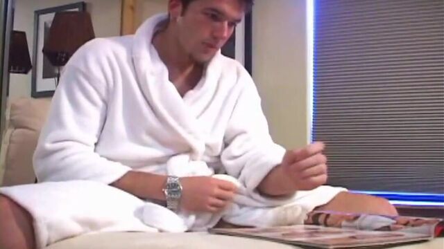 Trystan Bull is back and his horns are hard and ready. He decides to have a nice relaxing playful session in the hot tub. This guy's cock is gorgeous especially when submerged underwater.He strokes his long shaft in the hot tub to warm up his hard dick. After the refreshing hot water he takes his lovely cock and balls into the house where a porno magazine awaits and finishes with a big load all over his hairy chest. Enjoy!