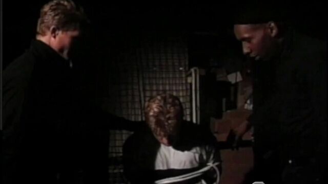 This scene includes the anal insertion of a nightstick, which deemed it 'controversial' when it was produced.Troy Halston and Jack Simmons are the two sadistic males who torment their frightened victim. They tell young Jake Cannon he’s being held for ransom and then they have him to observe them have sex. Jake squirms uncomfortably as he watches Jack suck Troy’s cock before diving between his buttcheeks to eat his ass. Troy returns the favor and swallows his cohort’s big black cock, Then he squats over a big black baton and rides it hard and fast. Jack follows up to plug Troy’s primed hole with his stiff rod and fucks away. Then they flank the trussed-up Jake and beat their meat ‘til they shoots their wads, sneering with pleasure as they unwind.