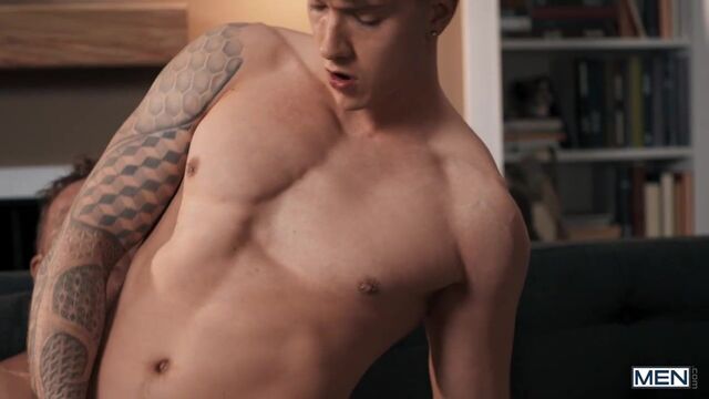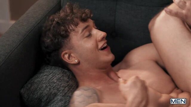While his roommate Finn August is working out, Jax takes the chance to fuck his realistic ass toy on the couch. But when Finn unexpectedly comes home and sees him, he wants to be the one taking his roomie's dick instead! Finn distracts Jax with a call and switches places with the ass, hiding under blankets. As Jax slides his cock inside, Finn can't help moaning, and the jig is up! Jax likes this ass much better, and he gives it a workout, licking it and pounding Finn in doggystyle and missionary. Finn sits on that big dick and rides the top till he cums, then Jax shoots a load on his muscle ass. That was the workout they needed!