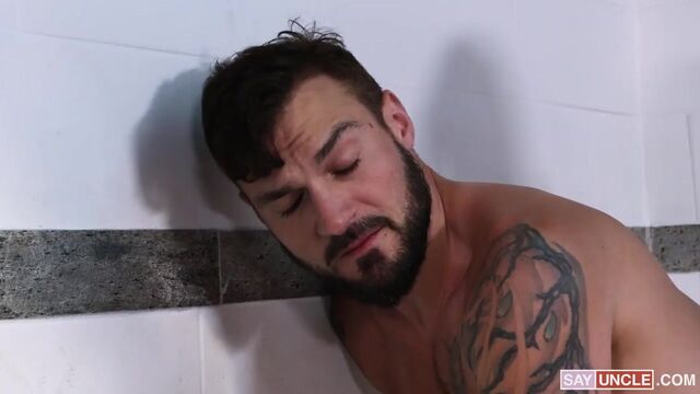 Hey, SayUncle fans! How did you like Lance’s scorching hot debut? You feel you have room for more action between him and the kinky Aiden Tyler? Then, you’re in luck, ‘cause we have extra footage of these two studs getting nasty in the locker room! This time, Lance overdid it while working out and now his thigh is sore, so his good buddy Aiden is happy to give him a nice rub to make it all go away. But as his hands reach out for his crotch, he gets all sorts of naughty ideas and tells Lance to get some water on his body to reduce the swelling. Lance obeys as his mate gets him naked and follows him into the shower. Not long after, Aiden is already on his knees, eating up Lance’s big cock. The guy completely forgets about his swollen thigh while Aiden swallows his dick greedily, anxious to feel it pushing deep inside his hole.