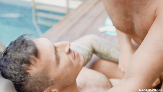 Damon Heart, Manuel Reyes, and Derek Kage fuck poolside - Naked Sword