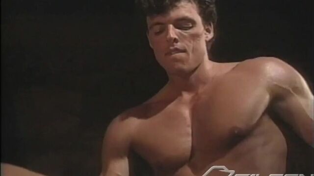 Ken Adkins and Chip Daniels hold an informal employee meeting where the muscular Adkins primes Chip’s asshole on the bar with his warm, wet, tongue. Adkins fucks his employee so hard that Chip has to hold on to his ankles just to keep balance.