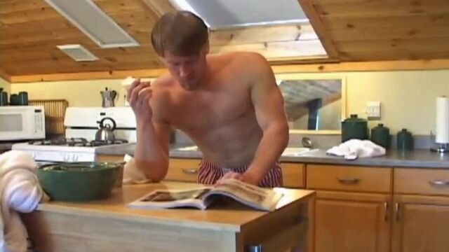 We all love to masturbate in the morning before we got our day started. Steven decides to prepare a bagel for consumption but it's not long before he starts to get horny and he pulls out his stiff cock. First he's stroking his shaft in the kitchen but then realizes that sitting down with his legs spread will give him a better grip to stroke his cock while he enjoys the feeling of his balls resting on the chair. After he's done playing with his hard dick he then gets dressed and takes the fun into the bedroom. Cum watch Steven blow his hot on his muscular chest. Enjoy...