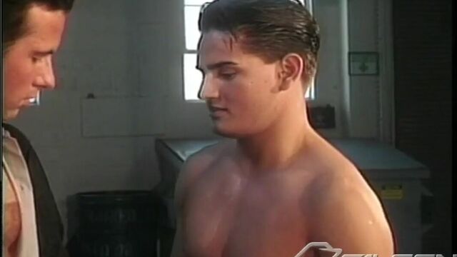 Jeff Palmer, Brian Cruise, Derreck Baldwin, Kyle Hunter. The three hunky mechanics find themselves with time to spare. Kyle goes down on Brian while Derreck plugs his manhole. Brian wants some ass too, so he and Derreck switch and both continue ramming Kyle from both ends while Jeff looks on bemused.