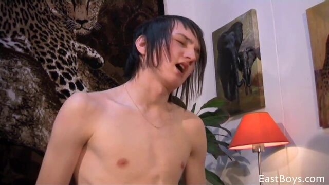The title says it all, these two hot dudes start with kissing on a sofa, and then strip in a flash exposing their nice smooth athletic body, before starting to thrust their cocks in each other ass - and thrust them hard! Our Emmo twink proceeds to jerk off and shoot wad of cum on the other dude's face. Hardcore action all the way!