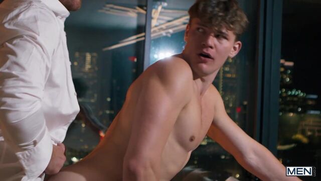 Oliver Marks needs a cab, but his phone dies before he can call one. Lucky for this businessman, driver Carter Collins pulls up and offers him a lift. The guys strike up a chat that gets surprisingly intimate before arriving at Oliver's hotel, and he asks Carter up to his room. Carter makes the first move as they admire the view, and Oliver forgets all about his wife as he sucks the top. The driver goes down on Oliver, then fucks him doggystyle in front of the floor-to-ceiling windows. The guys move to the bed where Carter penetrates Oliver in spoon. The businessman rides the driver, then orgasms as he gets pounded in missionary before Carter pulls out and cums.