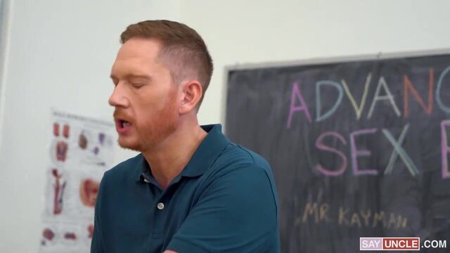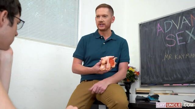 - Description: I always try to be the best professor I can, but teaching sex education is difficult. Especially when my only student is not paying attention when I'm trying to teach him everything I know about penises because he is too busy jerking off right in front of me. Today I tried a different approach to help him understand and pass my class: I let him suck my cock and pounded his ass with it. Now that he has seen, felt, and tasted my penis, I'm sure he'll never forget a single thing about it. I have to admit, the way he rode my dick might have earned him some extra points.