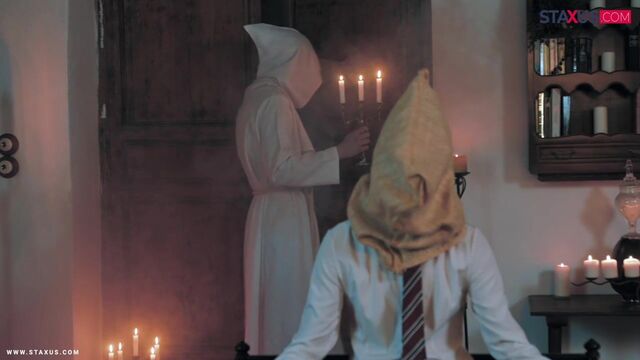 - Description: A seemingly innocent walk in the park takes a dark turn for young Henrique when he's abducted by a hooded figure. He awakens bound in a dimly lit ritual chamber, the air thick with mystery and the scent of candle wax. There, he encounters the enigmatic Julien, draped in a white robe, who reveals Henrique's "chosen" status within a clandestine Brotherhood.Julien's calm demeanor belies a dominant will as he initiates a series of intense and intimate trials to test Henrique's worthiness. A deep, controlling kiss while Henrique remains bound ignites a spark of willing submission. The encounter escalates as Julien reveals himself, leading Henrique into a fervent act of worship.The ritualistic atmosphere intensifies with acts of deep rimming and forceful fucking, culminating in a shared climax that leaves Henrique dazed and marked. Julien's cryptic words hint at a higher power within the Brotherhood, suggesting Henrique's journey has just begun. As Julien departs, Henrique is left alone, overwhelmed by the experience and the implications of his newfound path.