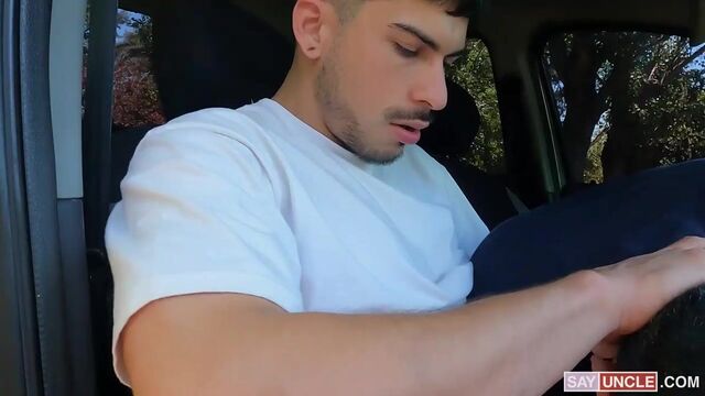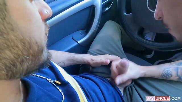 Bastian hails a ride with Luke, a handsome driver new to the city. Bastian immediately notices Luke’s sexy disposition and knack for kink, so he strikes a conversation with him to see if he is willing to do more than take him to his destination. As a newcomer, Luke needs to get a five-star rating to earn more money through the app, so he asks Bastian to review him accordingly. Bastian tells him that he would be happy to give him the highest score as long as he goes the extra mile to please his customers. Luke immediately catches his drift and invites him to the passenger seat to rub his hard dick. Bastian obeys and does much more than fondling his driver's crotch. After a good taste of Luke’s meaty cock, Bastian begs his driver to stretch his hole. Luke happily obliges, pounding Luke’s tight hole nice and hard on the