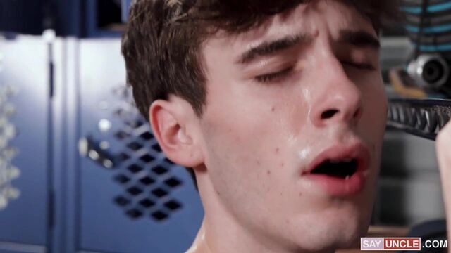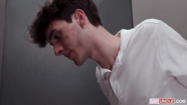 During a tense exam, Max, feeling the pressure, decided to take a risk. He furtively slipped out of the classroom and into the nearby bathroom. He quickly pulled out his hidden notes. Just as he was about to return to the exam room, the bathroom door opened. Max froze as he heard the all-too-familiar footsteps of Mr. Ford, his hot, stern, and unforgiving teacher. Caught red-handed, Max had no choice but to emerge with his notes clutched in his hand. Mr. Ford's eyes narrowed as he quickly understood the boy was cheating on his exam. Max tried to defend himself by saying Mr. Ford always went too hard on him, but the teacher was already too disappointed. He needed proof of Max’s respect, so he told him to go into the bathroom stall and made him suck his dick. Max reluctantly agreed, secretly enjoying every second of his teacher’s meaty cock in his mouth. But Mr. Ford wouldn’t leave things there; if Max wanted to prove his respect, he’d have to give his hole to his teacher and let him do whatever he pleases with it.