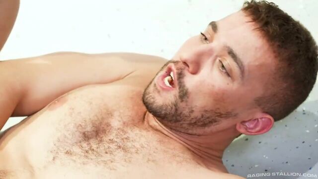 Hoping a hot shower will help him wash away the disappointment experienced by the big mistake he made that cost his team the win, Eman Zod relaxes under the rushing water. Sean Maygers catches Eman Zod in the showers and reminds him of the mistake he made at the end of the game. When Eman talks back, Sean shows him who's in charge and pins him up against the wall. When Eman realizes what Sean is going for, he lets Sean bend down and lick his hairy hole. After getting his hole licked, Eman switches positions with Sean to deepthroat Sean's thick cock. Eman gags on Sean's hefty dick, turns around and let's Sean drive his cock deep in his crack. In mid thrust, Eman dismounts and wraps his lips around Sean's cock that was just inside of him. Sean puts his teammate on the floor of the shower and shoves his cock back in the find Eman's prostate. When Sean needs a break, Eman climbs on top and rides Sean's cock down to the base until he cums handsfree. Sean scores a thick load out of his cock that Eman takes into his mouth, sharing a kiss and his own load with Sean.