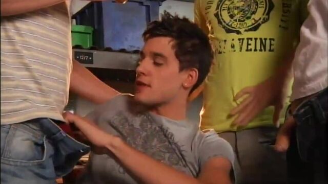 Fresh-faced Nick Deniels proves once again why he’s such fabulously hot property by taking on the collected merits of Zac Powers, Egan Zeps and Bram Hester – turning the factory storeroom into a veritable den of debauchery in the process. Truth is, Deniels is seemingly wired up for cock – slurping off all that man-meat like a natural, before ultimately parting his legs for a succession of fucks from his over-sexed work colleagues. Not that he’s alone in his appetite for beefy, uncut knobs – his pals taking turns to feed off each other whilst pummelling Deniels’ hungry hole. But it’s unquestionably Deniels who remains the star of the occasion from beginning to end – his performance culminating in his demand that Powers, Zeps and Hester all piss on him. A request that these young sex-whores are more than willing to realise, turning Deniels into a piss-sodden slut in the process. Totally filthy – and compulsive viewing!
