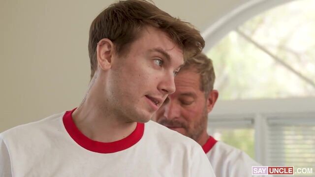 Greg has an upcoming charity event, and he needs all the help he can get. He tries to convince his stepson Caden to participate, but the boy isn’t particularly interested. It’s not that he’s not into charity, but he has some doubts related to his stepdad’s marketing methods. He wants his stepson to wear a tight costume to see if they can attract people to buy lots of ice cream and hot dogs. Caden tries the outfit reluctantly, making his ass stand out. Greg notices his boy’s cute tushy and starts playing with it. Suddenly, the pervy stepdad reaches out for his stepson’s crotch. Caden feels the blood rushing into his cock as his stepdad starts rubbing it. Soon, ice cream and hot dogs are the last thing on Caden’s mind as he enjoys his stepdad’s cock-sucking skills. After all, helping Greg out is not such a bad idea if he gets to unwind first by creaming his stepdad’s hole before the event…