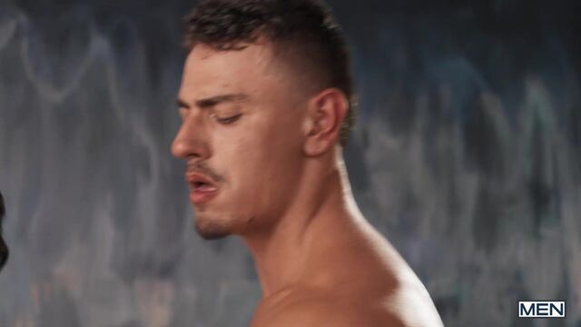 Ashton Summers and Samm Fitness set up their yoga mats in the living room and start their meditation routine, but horny roommate Nikolai Lazaro has a more embodied activity in mind. He sneaks up to Samm and licks his fingers, telling him to stay quiet as he touches his muscular chest while Samm jacks off. After Samm cums, Nikolai switches his full focus to Ashton, ripping open the bottom's shorts as Ashton goes into a deep stretch and licking his hole, then sucking him before he fucks the hottie doggystyle. Ashton concentrates on the sensations as Nikolai drills him on his back and from behind, then the guys sit side by side and stroke themselves off.