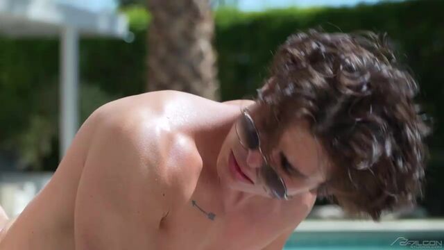 The sun is blazing, the water refreshing, and Seth Peterson is more than ready to take a poolside pounding from Silas Brooks and his hugely impressive cock. After ditching his skimpy swimsuit and sucking off the twunk's big dick, Seth drops to all-fours to get rimmed and barebacked by his hole-hungry fuck buddy. Still outdoors where any nosy neighbor could see them having sex by the pool, Seth strokes himself while taking every inch of Silas' hard cock until the hung top is pulling out to bust ropes all over Seth's exposed ass and taint.
