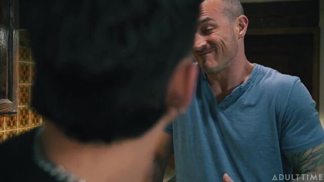 Siren Santiago enters the kitchen to find his stepdad, Derek Kage, looking down in the dumps as he stirs a pot of mac and cheese. When Siren asks where his other parent is, Derek admits that she and him had a fight earlier, causing her to need a bit of space and rent out a hotel room for the night. It turns out that Derek wants to expand the family with a new addition, but his wife doesn't want that.Siren sympathizes with his stepdad and tries to cheer him up a bit, noticing how sad and lonely he looks. Not only that, but Siren takes it a step further by trying to seduce Derek into getting intimate together. Derek is floored, but also super tempted... and since his wife's not home, this might be the only time he can get away with doing something so naughty with his own stepson. Plus, it's not like he can get Siren pregnant... so he can release all the cum he wants into his stepson's welcoming ass with no strings attached!