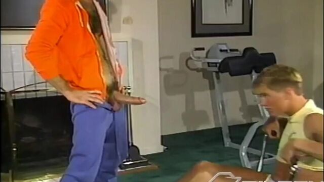 Kevin Williams has hired Chad Douglas as his at home workout coach. Kevin does just as he is told for that monster cock that Chad has for him. He gets to suck Chad's cock while he is on the rowing machine. Then he is bent over his bicep press to take all of Chad up his ass.