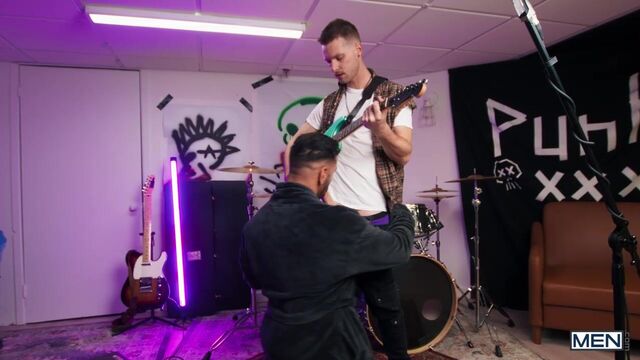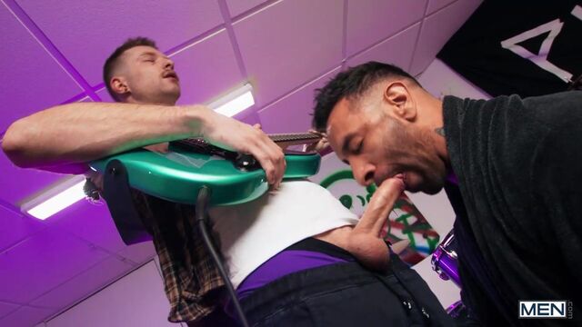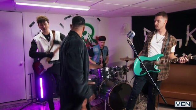 Mateo Zagal wanted to stay in bed, but he's jarred awake by the sound of Benjamin Blue practicing with his punk band and screaming about sucking dicks at 6 a.m. When Mateo goes to give his stepson a piece of his mind, his hard dick escapes his robe! Benjamin's friends leave, and the rebellious twink tells his stepdad to suck him... and to both their amazement, Mateo does. The stepdad agrees to let Benjamin practice in the garage whenever he wants if he'll only put that perfect dick in his ass, and the top fucks him doggystyle, then sucks the bottom before Mateo rides him. Benjamin drills his stepdad on the couch till they both cum. Rock 'n' roll!