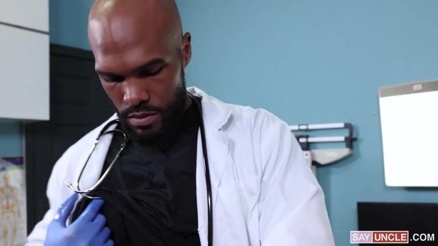 Benji visits Dr. Ryan, his handsome black physician, for a routine check-up and full-body measurements before joining his soccer team. He needs to make sure everything is perfect so he can compete. Dr. Ryan examines his vitals and conducts a series of usual check-ups. Benji feels a little shy about being touched by another man, but the firm and warm hands of Dr. Ryan make him feel stuff he has never experienced before. Noticing this, Dr. Ryan decides to conduct one last check to see how Benji reacts: measuring his cock. Benji is uncomfortable with the idea at first, but Dr. Ryan’s firm grip of his dick instantly vanishes his concerns. Soon, Dr. Ryan’s mouth is all over Benji’s dick, and the young blonde stud is enjoying every second of it. The check-up evolves into a nasty fuck sesh, and the last thing to check before giving Benji the greenlight to play soccer is to see if he can endure a hot plow.