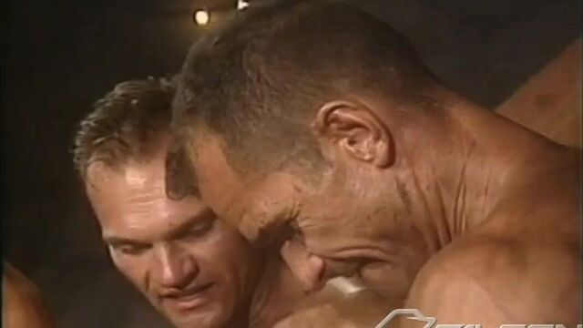 Tom Katt rests in the slave's bunk room and these dirty prisoners jump Tom and making him suck Michael D'Amours cock while Chuck Barron eats and fingers Tom's ass. Michael pushes his plunger in Tom's ample backside, before everyone drenches the hapless victim with their cum.
