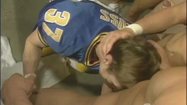 Sweat-drenched, dirty and totally turned on after a big game, ballers Cal Jackson, Maxx Diesel, Rob Romoni, Andy Hunter and Jason Hawke stroke their huge cocks as they peel off their sweaty jocks. As the circle jerk quickly becomes an orgy, Tyler Gunn joins in on the fun. As things get really hot and heavy, the team's quarterback, Josh Weston, joins in. They all shoot their thick loads on Josh's helmet.