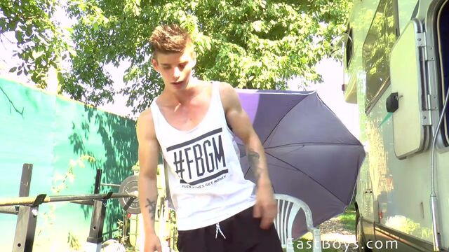 You have waited and waited, but finally new stuff with Alexander Dorch is here! Alex, with his beautiful ripped athletic body, angelic face and smile no one can resist - is here to show off his muscles in full 30 minutes of working out and flexing video. Alex is ripped for summer so he can bulk in winter, and you can admire his bulging rock hard biceps, and more. Alex will strip naked so nothing interferes with beauty of his body. Gentlemen, enjoy!