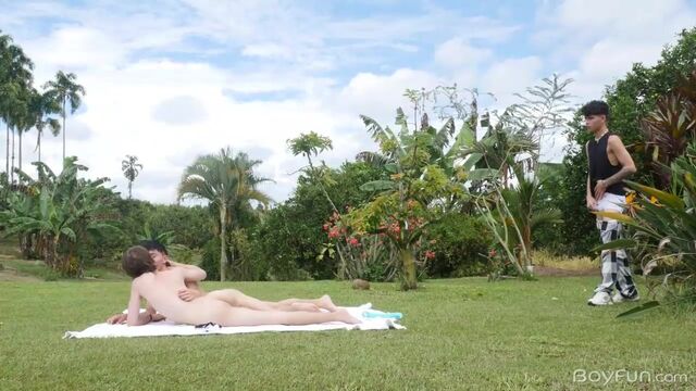 Jeremy Salvatore fucking with two more twinks at a picnic - Boyfun